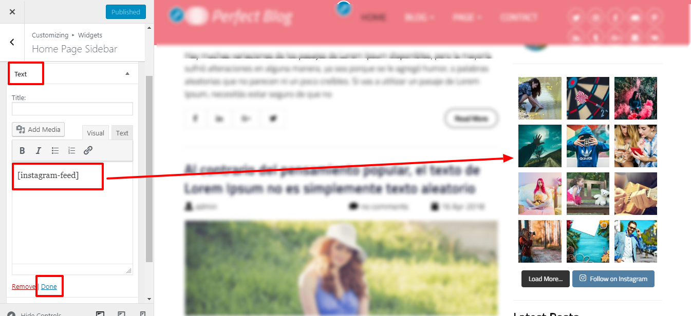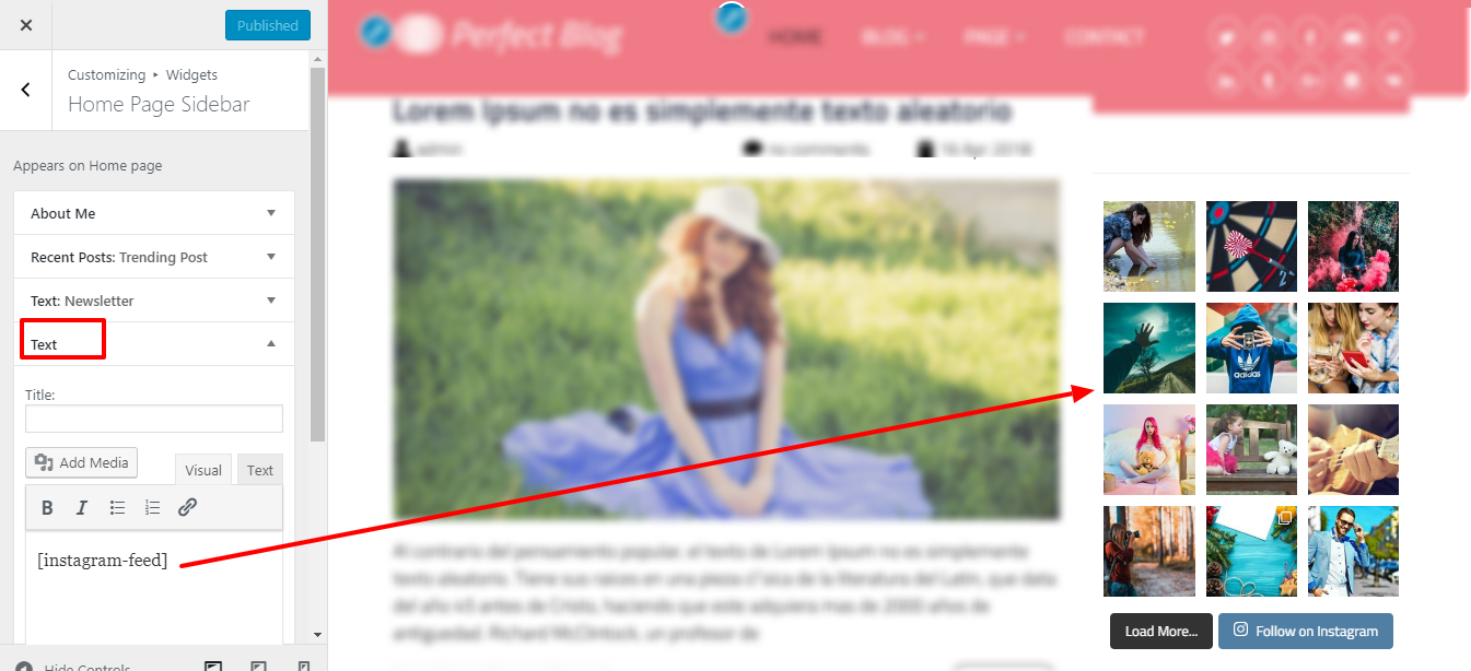 Add this shortcode immediately to the Instagram widget section.