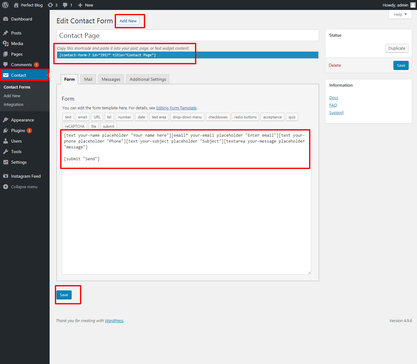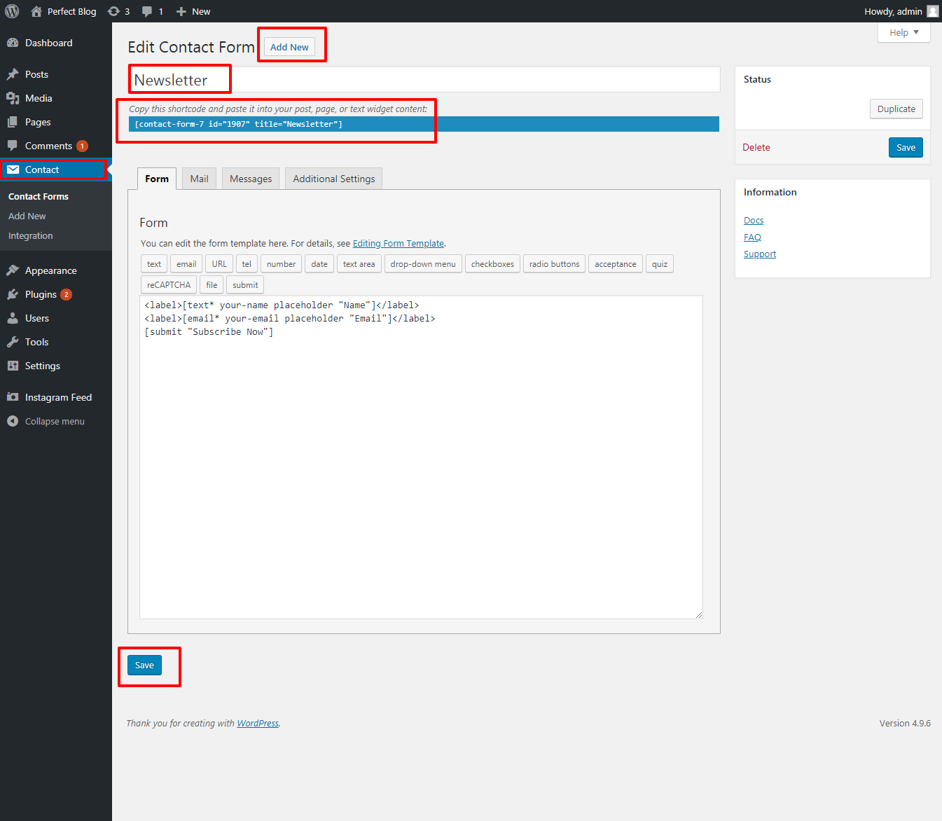 Go to >> Dashboard >> Contact Form >> Add New