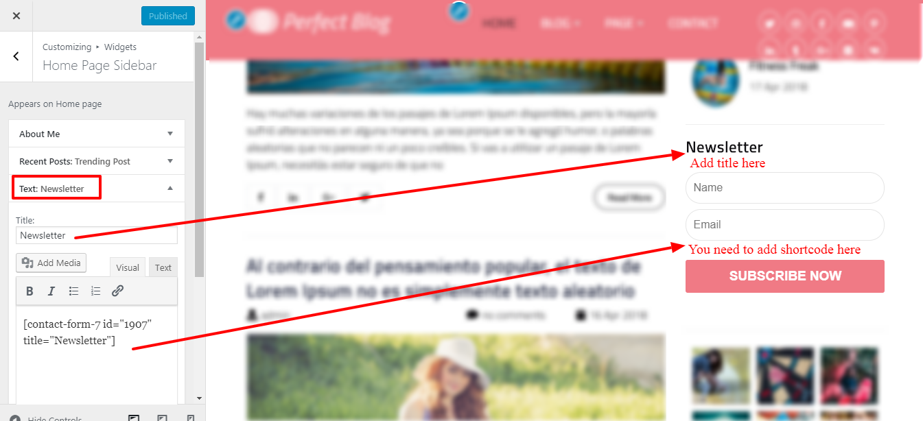 Newsletter[contact-form-7 id="1907" title="Newsletter"] - used for Newsletter section output. "1907" is the id replace it with yours.