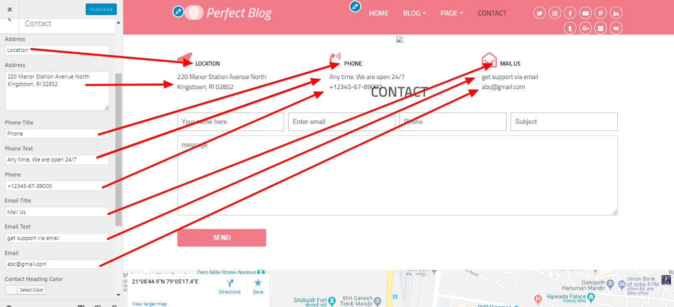 Go To Dashboard >> Appearance >> Customize >> Theme Setting >> Contact