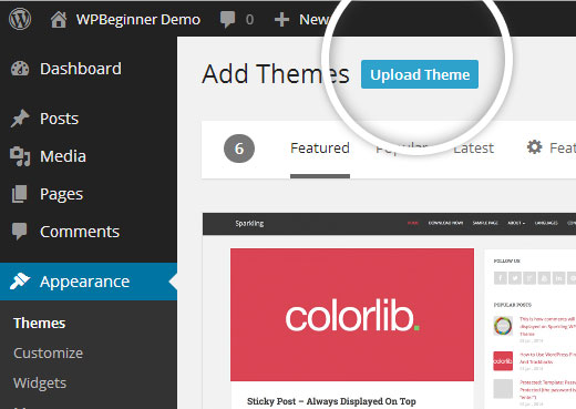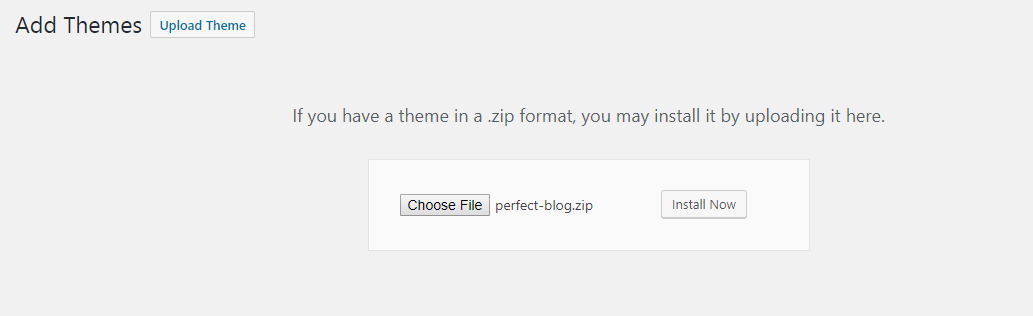 Click the Upload Theme button at the top of the following screen.