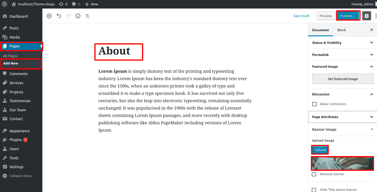 To set a template for a new page, navigate to the Dashboard, click on Pages, and then select Add New Page. Give the page a name, such as "Home," or any other desired label. Next, choose the "home-page" template from the dropdown menu of available templates.
