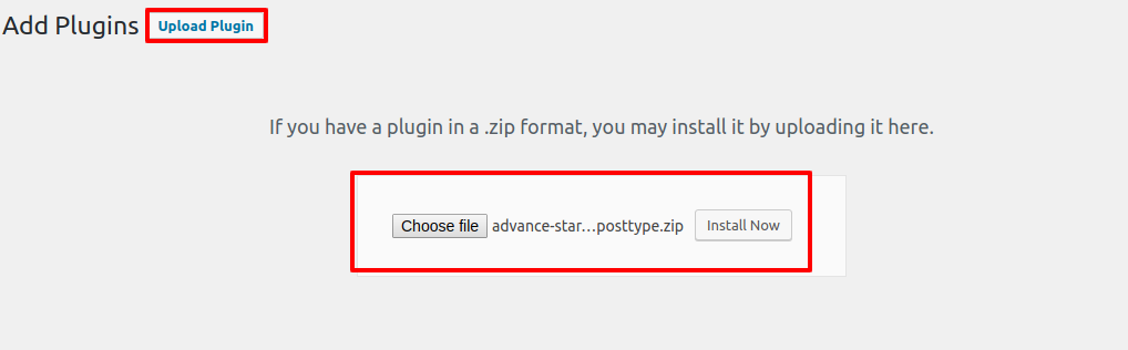 The advance-startup-pro-posttype component must first be downloaded from the source, which will be a zip file. You must then access WordPress dashboard and visit Plugin >> Add new.