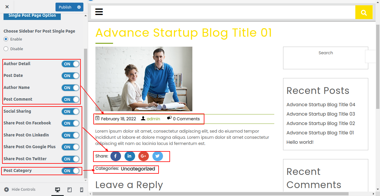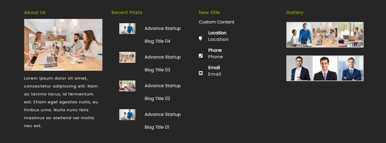 It will appear in the outputYou must enable the advance-startup-pro-posttype plugin for this section. (for more information refer to plugin section).