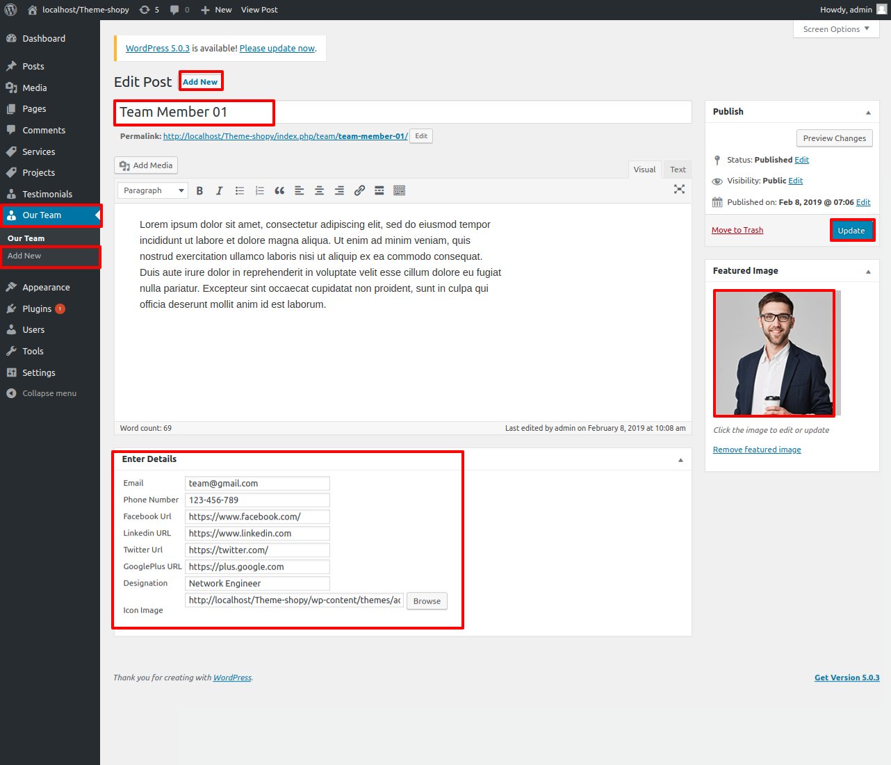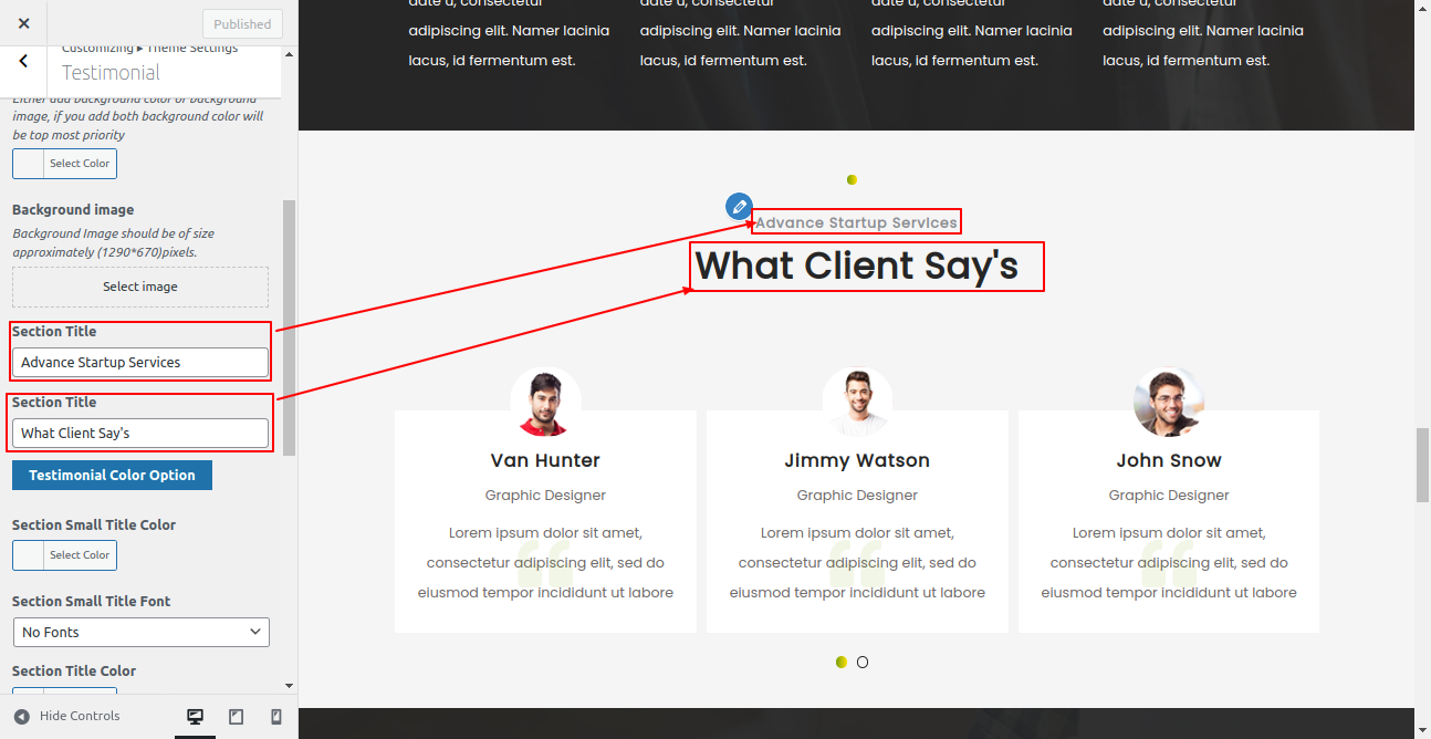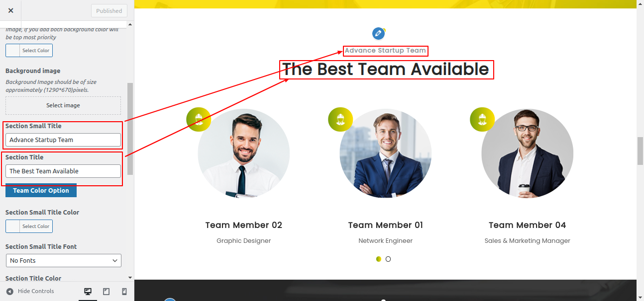 2. Go To Appearance >> Customize >> Theme Settings >>Our Team Section.