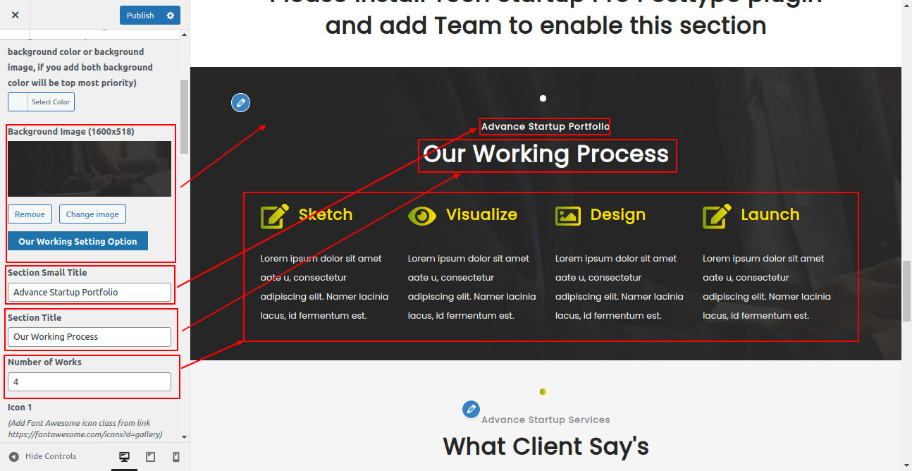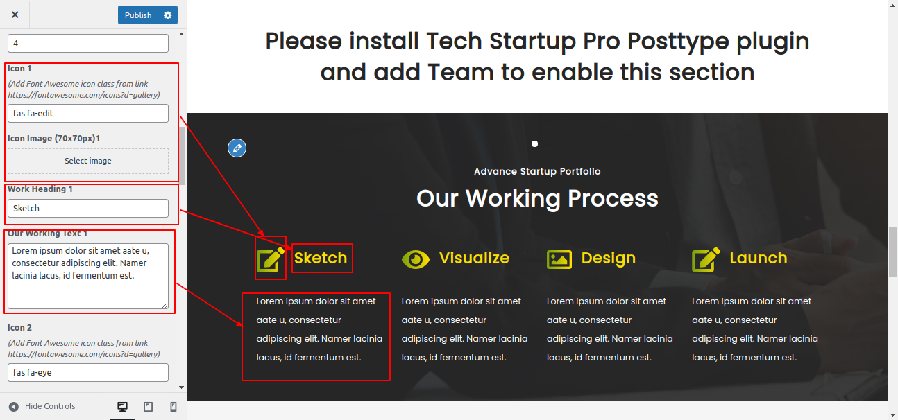 Go to Appearance >> Customize >> Theme Settings >> Our Working Process Section.