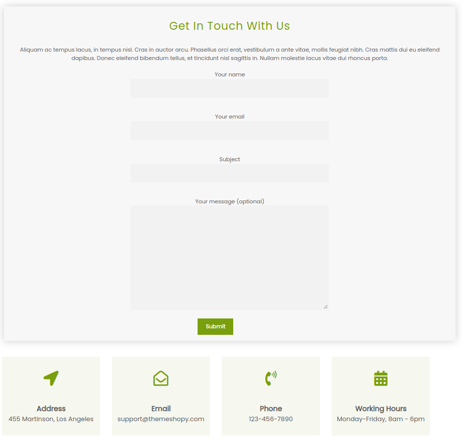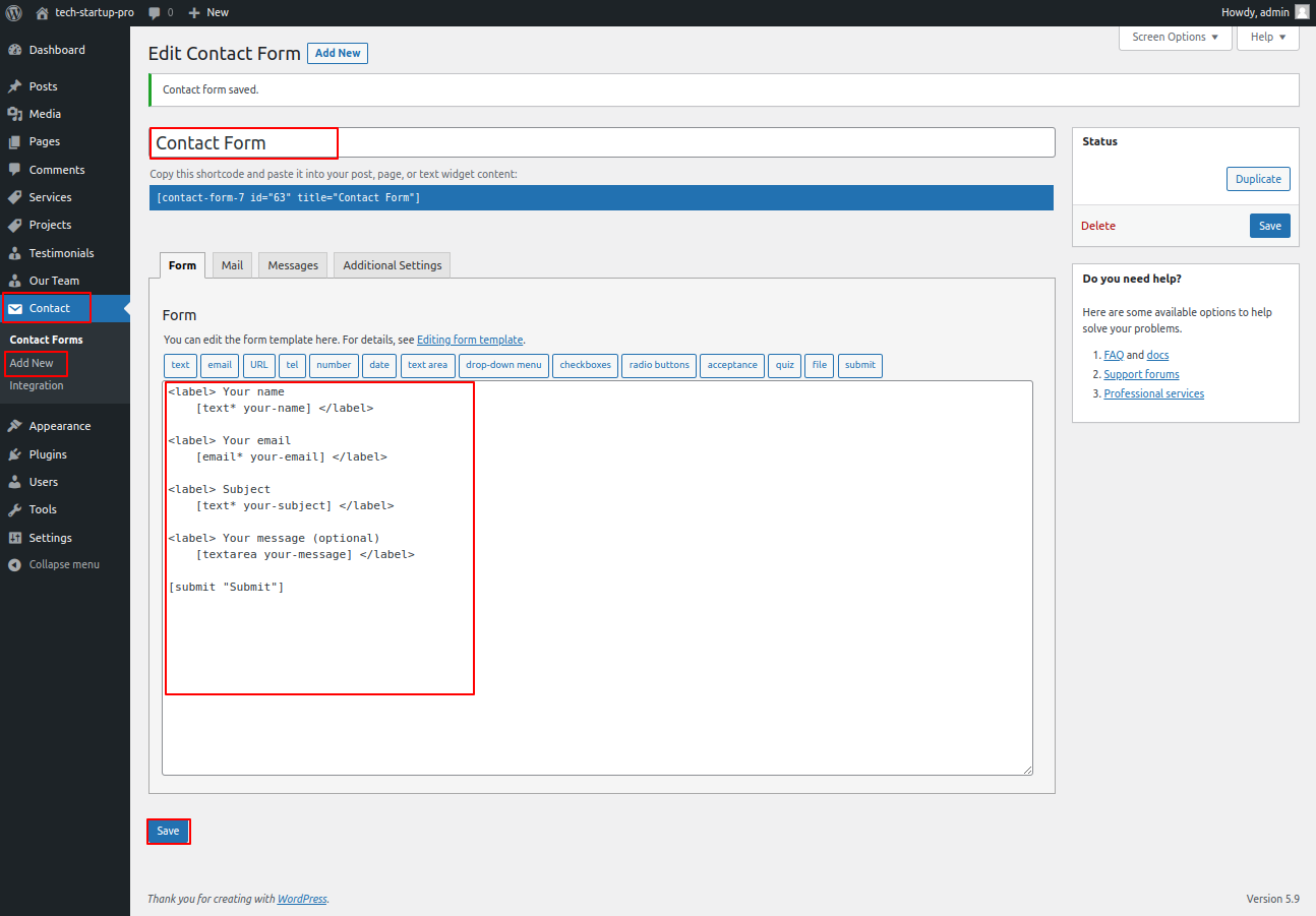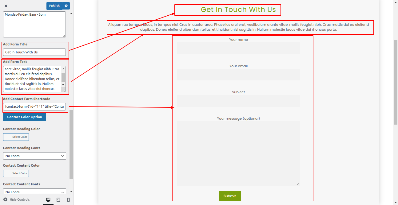 The Contact Form7 Plugin must first be installed and activated in order to make up this section.