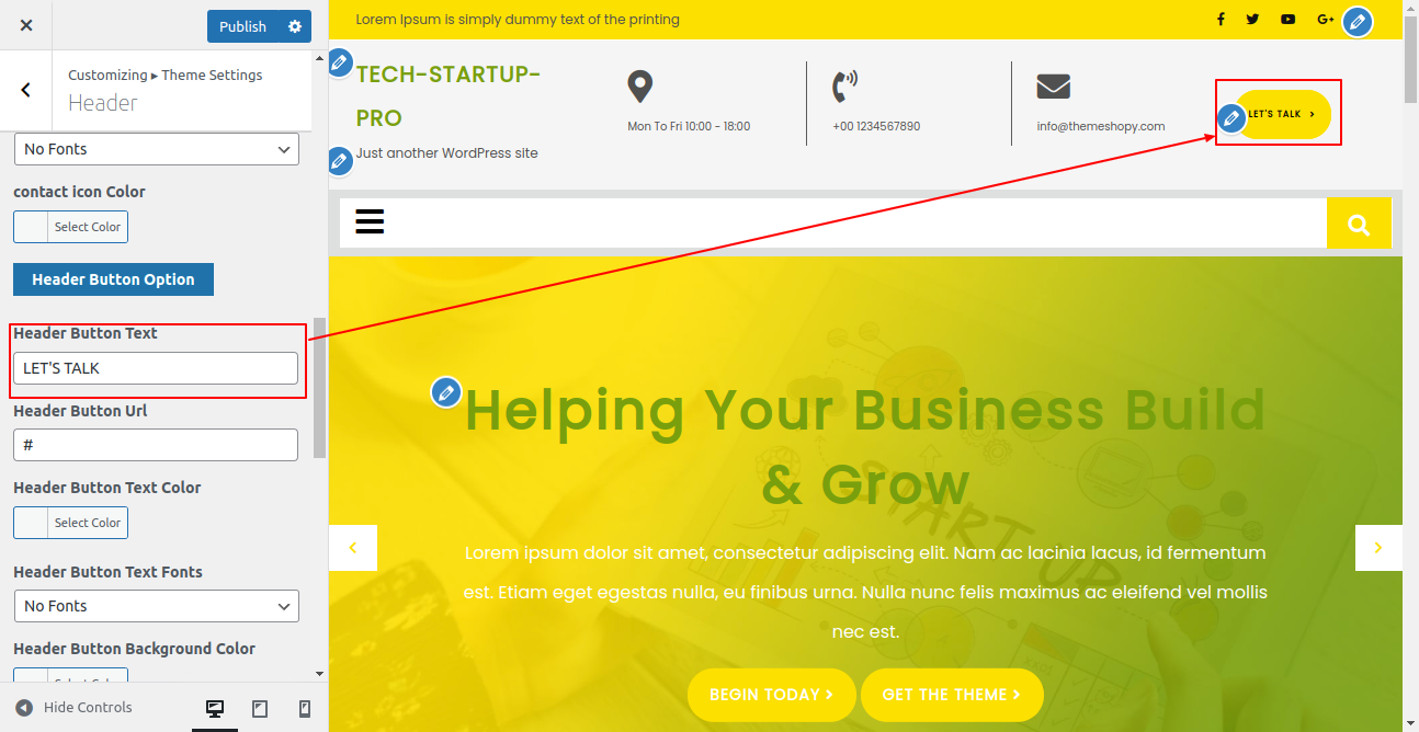 2. Go to Appearance >> Customize >> Theme Settings >> Header.