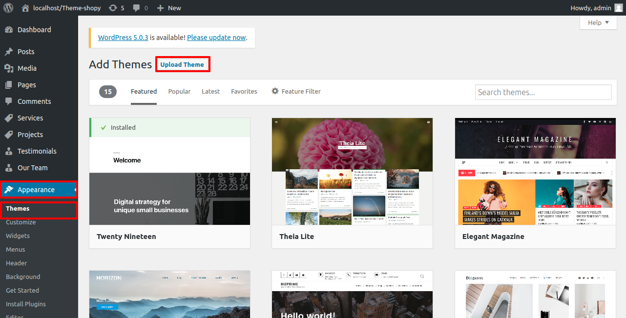 Keep in mind that before using FTP to submit a theme, the folders must be unzipped. Once the theme has been uploaded, you must access your admin section and click on Appearance » Themes..
