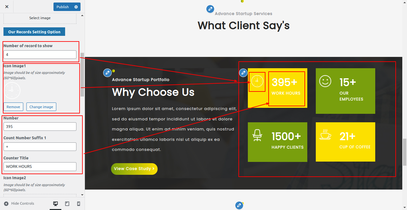 includes settings for Why Choose and a show enable/disable button for the counter. You can activate or disable this section using this setting. This environment is crucial. Simply set the option to enabled if you want both sections to appear on your website. If you don't want this part to appear on your website, you can select disable, and it will be removed.