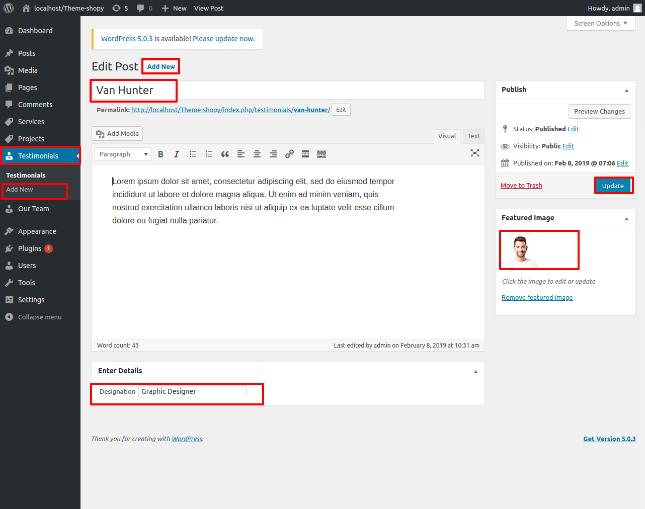 Go to Appearance >> Customize >> Theme Settings >> Testimonial.