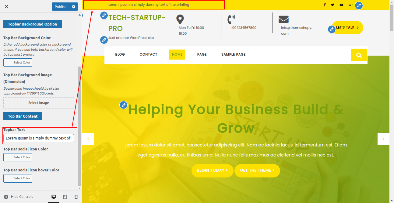 Go to Appearance >> Customize >> Theme Settings >> Top Bar Section.
