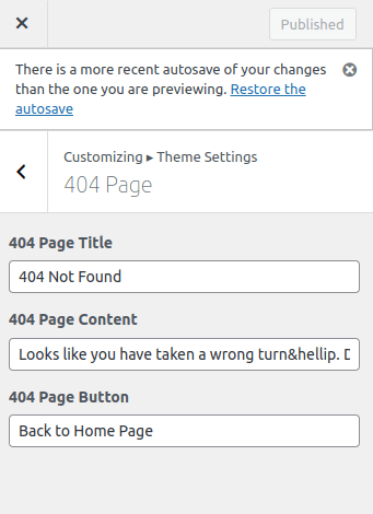 3. 404 Page Button: Here you can add 404 page button.