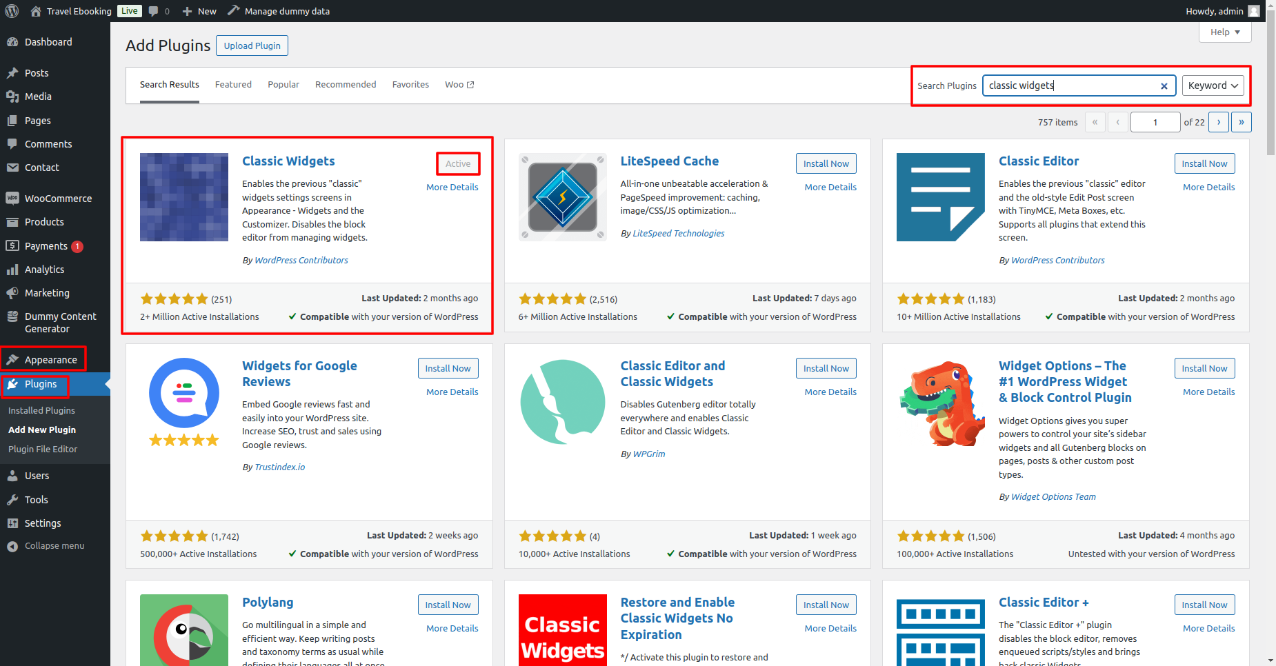 Install a Theme using WordPress Admin Theme Search