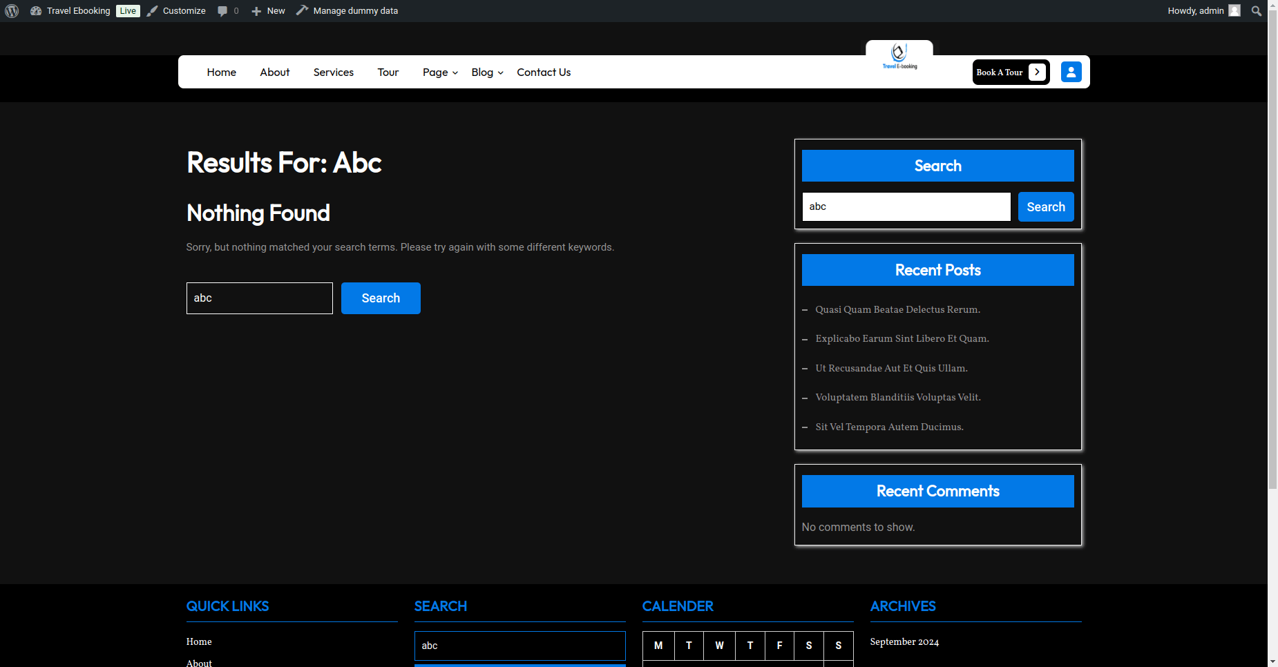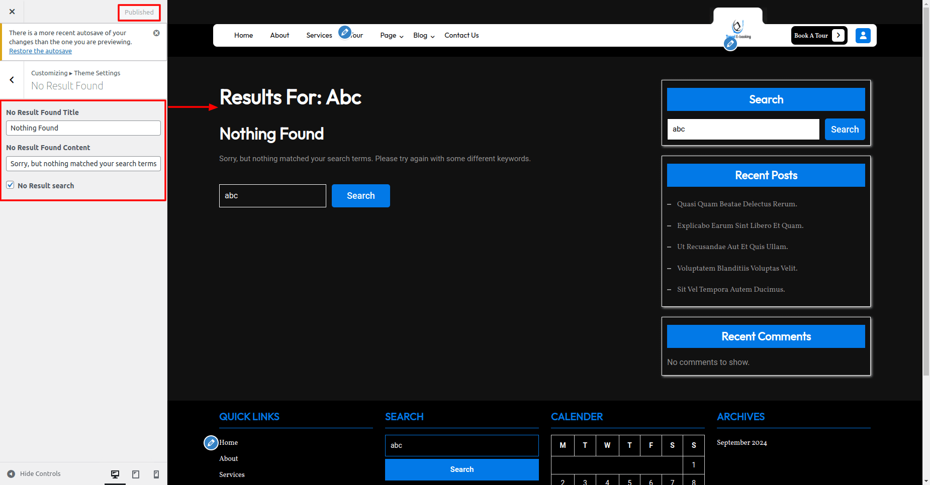 Go to Appearance >> Customize >> Themes Settings >> No Result Found