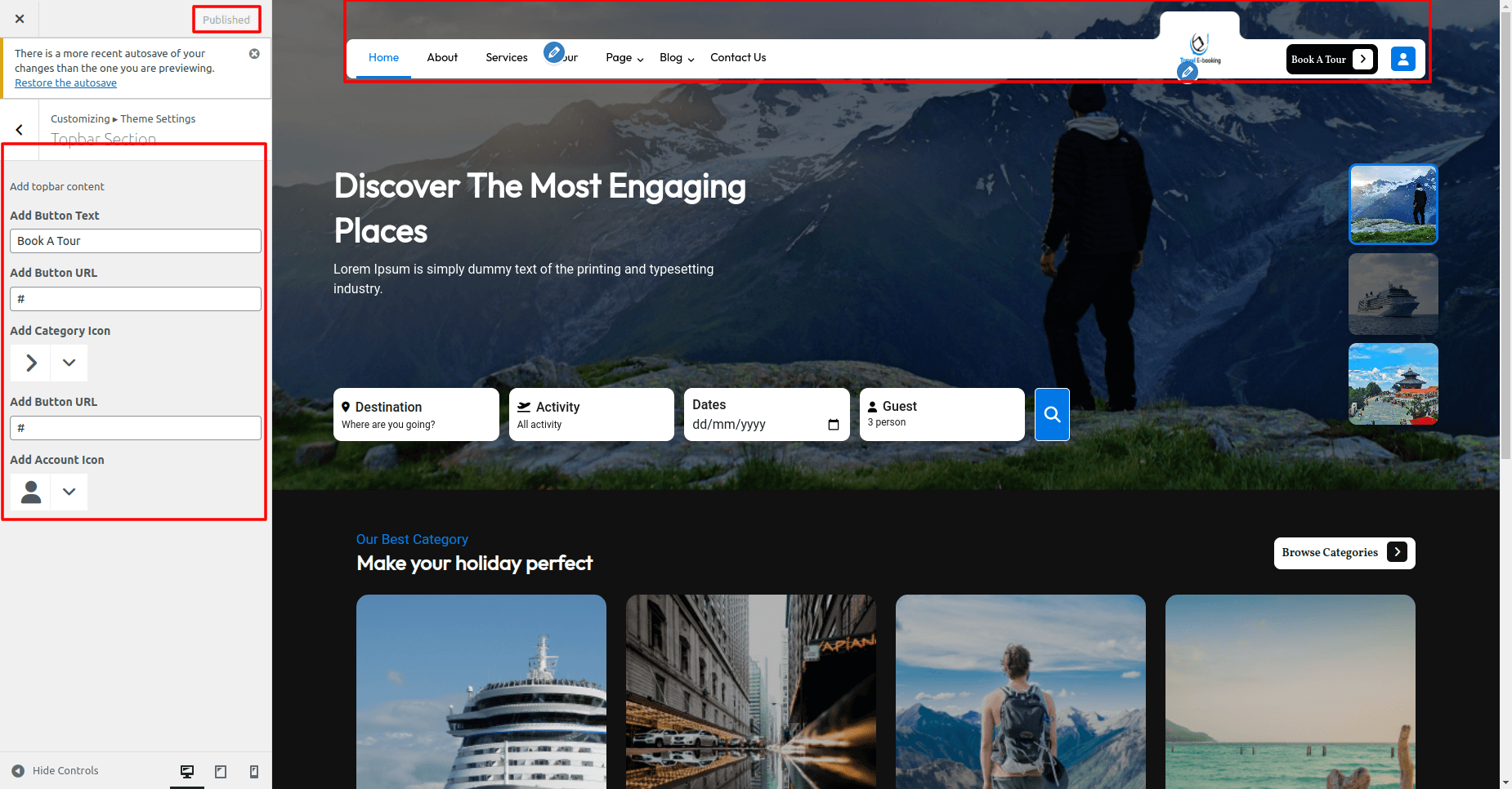 In order to setup Topbar section, follow the below steps.