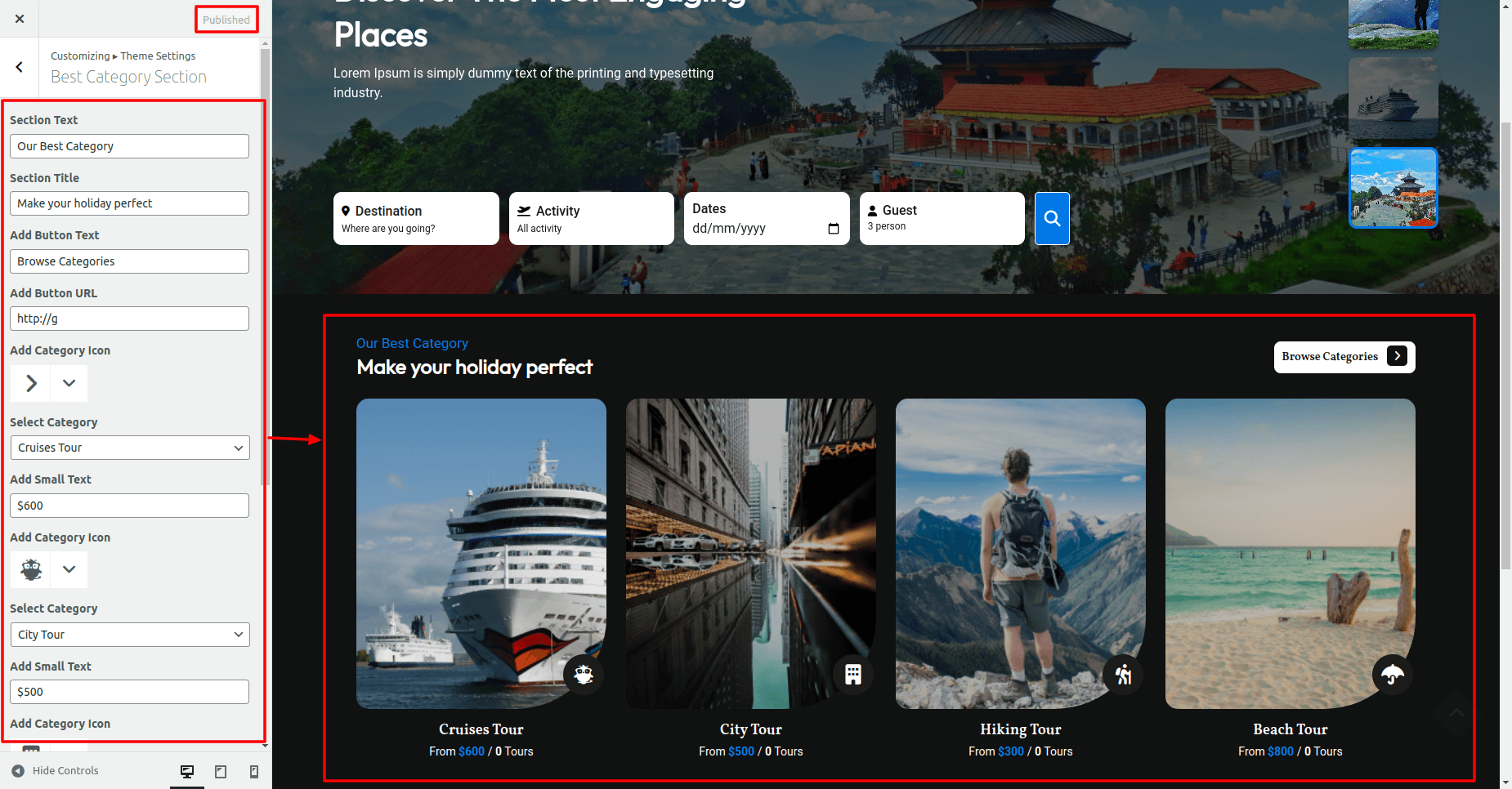 Go to Appearance >> Customize >> Themes Settings >> Best Categroy Section