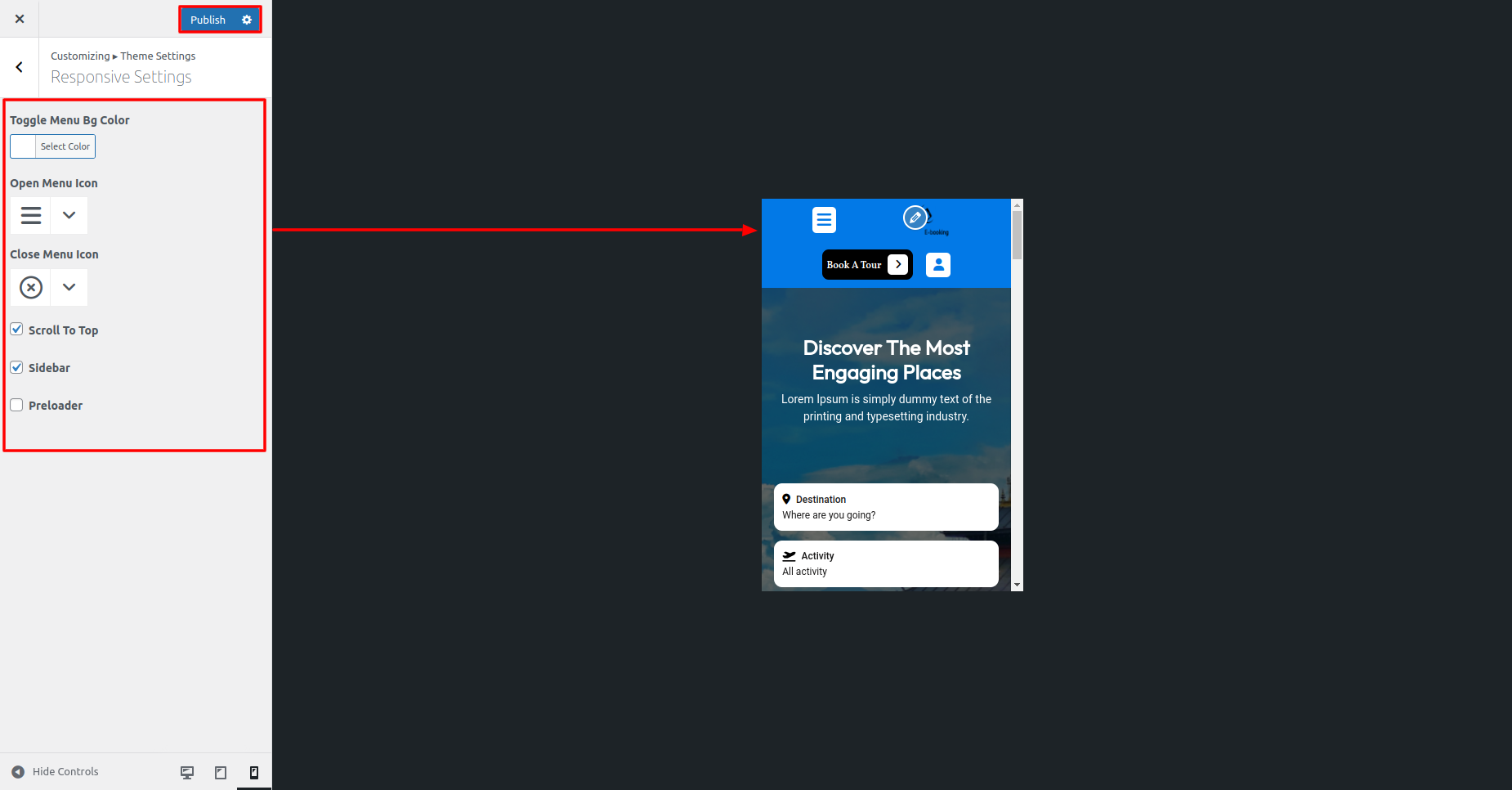 Go to Appearance >> Customize >> Themes Settings >> Responsive Settings