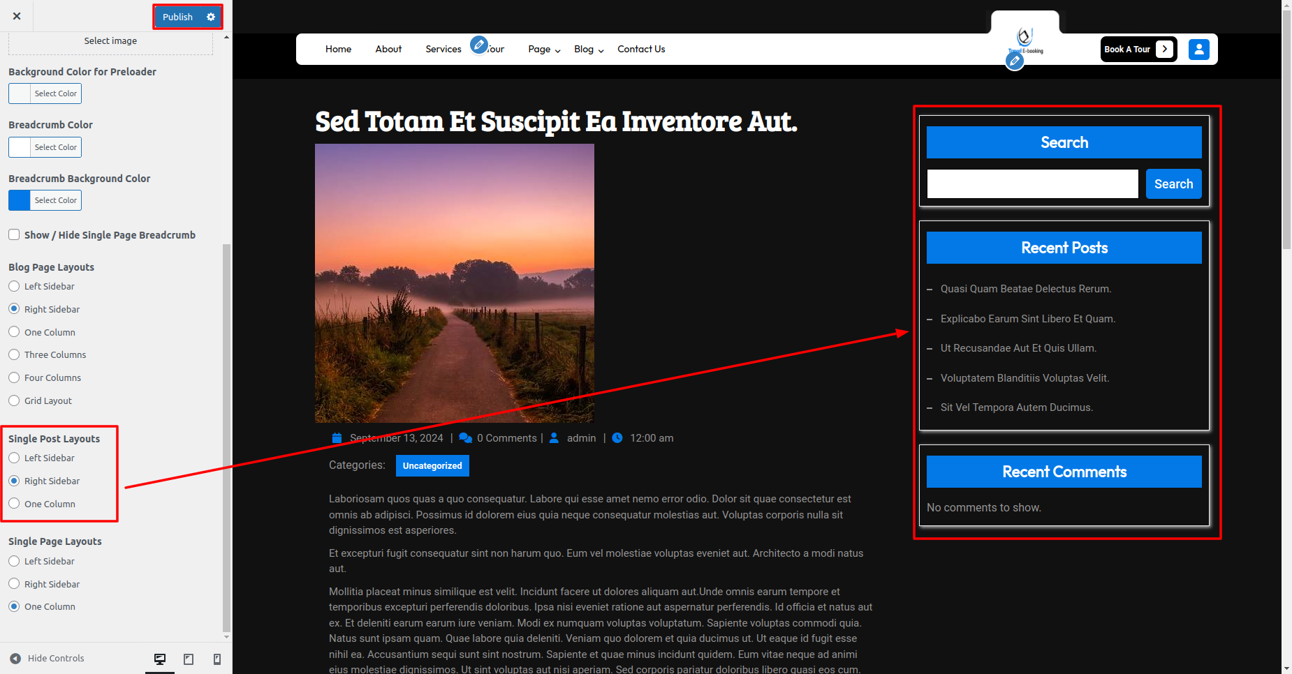 In Layout Settings, you can select the Blog Post Layout Sidebar.