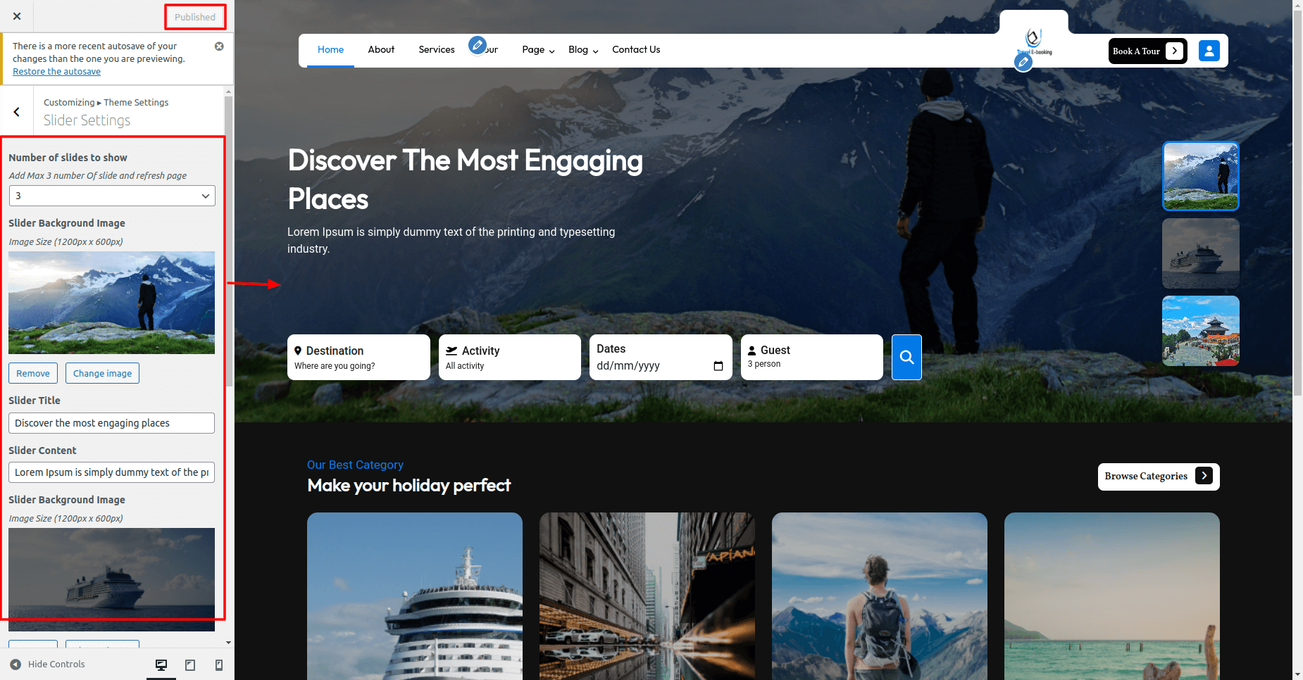 Once you have done with this you will see the slider on your front page.