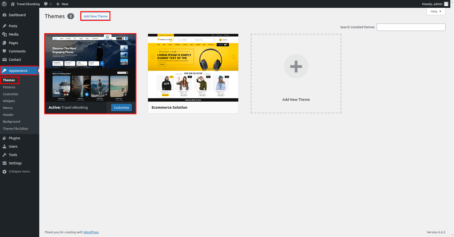 Appearance >> Themes.