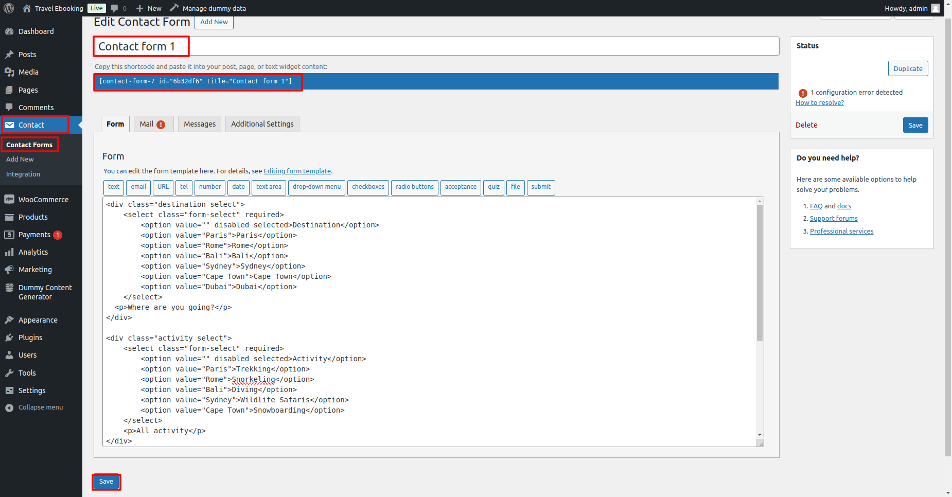 Install and activate Contact Form plugins.