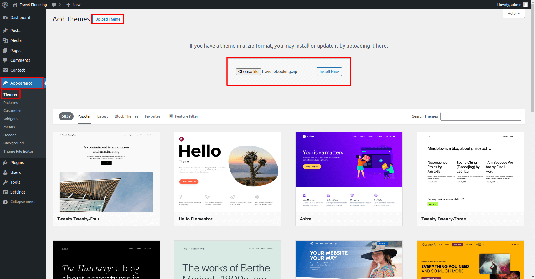 Install a Theme by using Upload Method from WordPress Admin