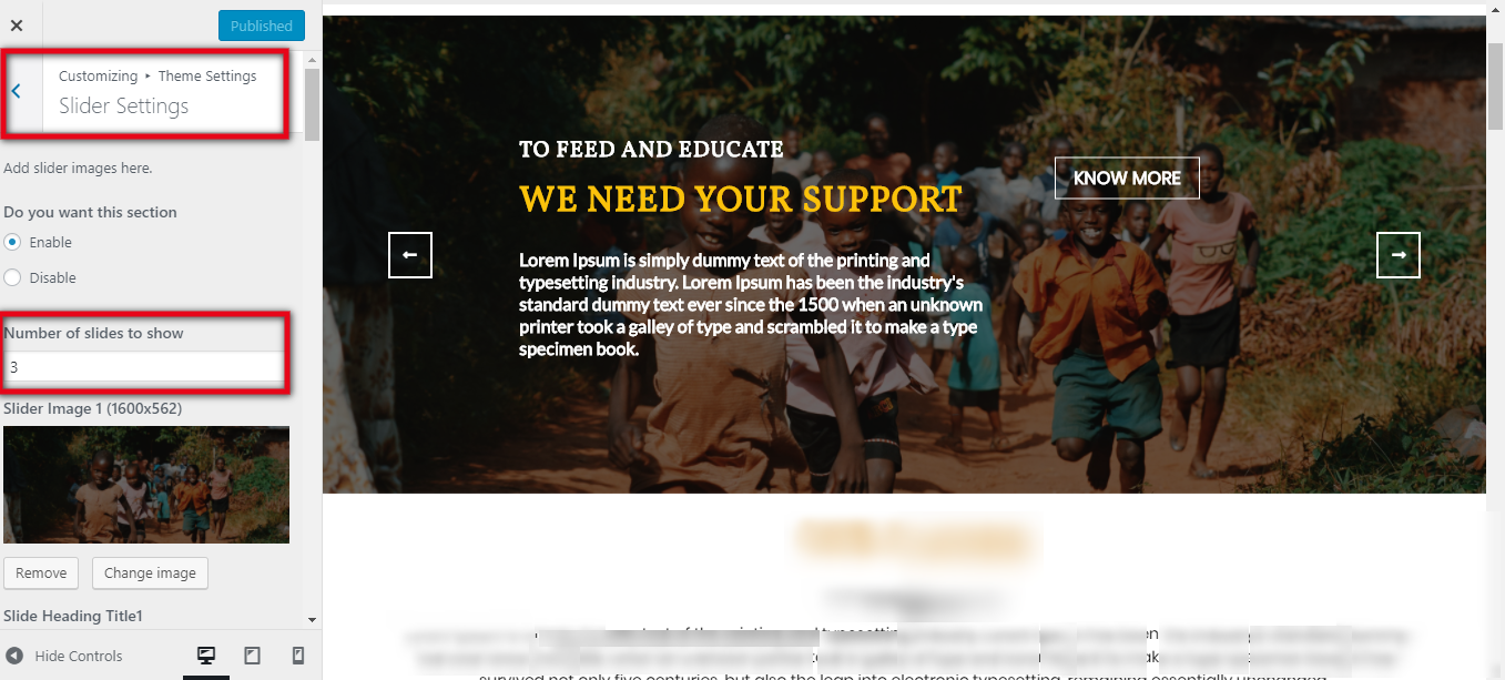 Go to Appearance >> Customize >> Theme Settings>> Slider Settings.