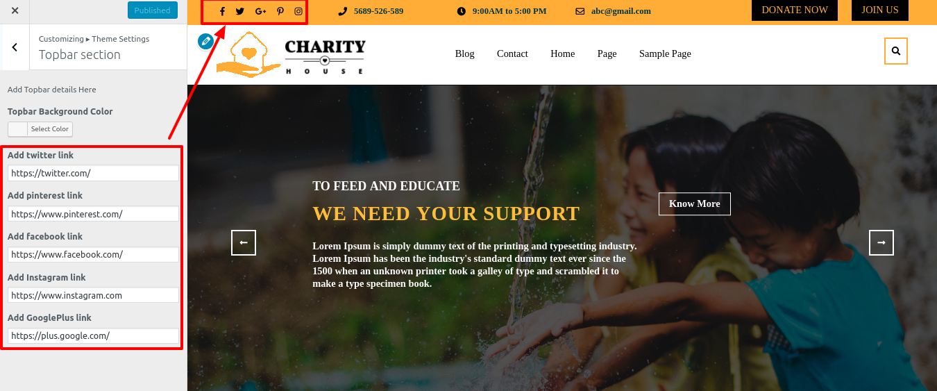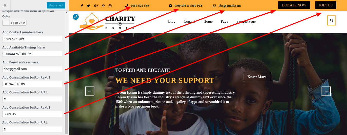 Go to Appearance >> Customize >> Theme Settings>> Happy Donor.