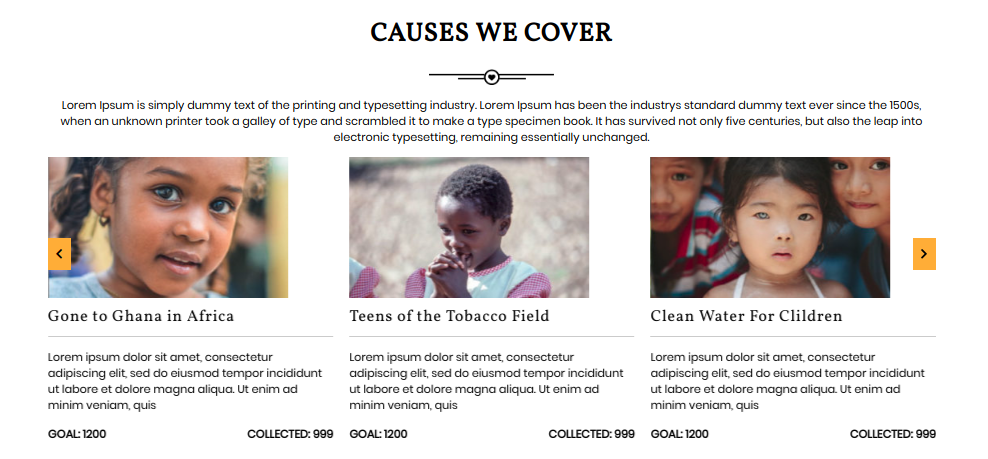 Causes We Cover - [causes] - used to display Causes We Cover Section.