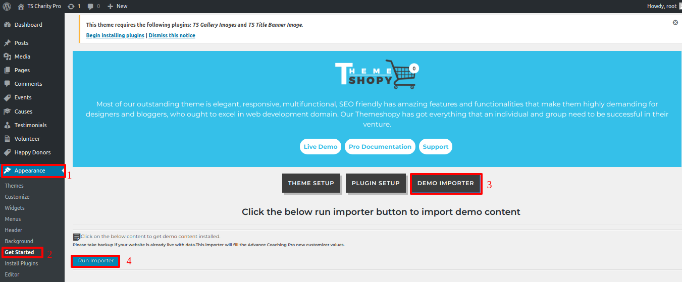 Then select "Run Importer" after selecting "Demo Importer.".