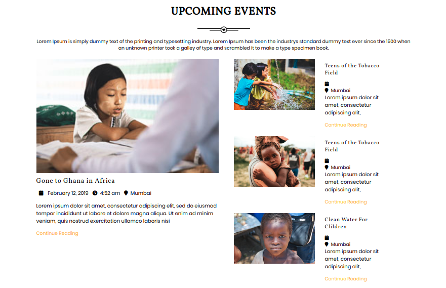 Upcoming Events - [list-event] - used to display Upcoming Events Section.