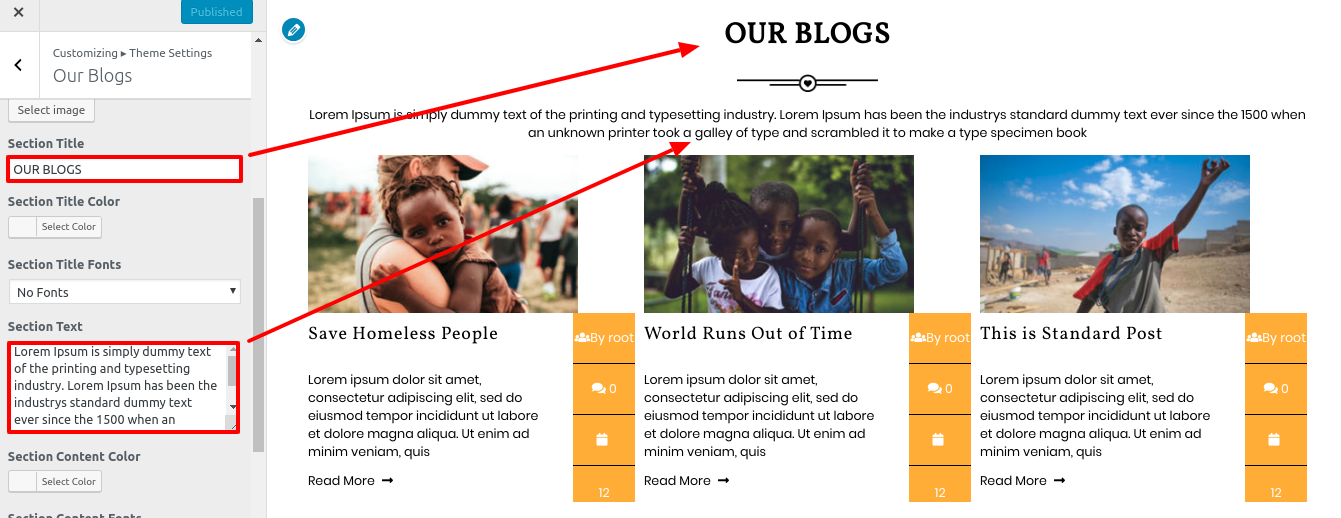 Then Go To Dashboard >> Customize >> Theme Settings >> Our Blogs.