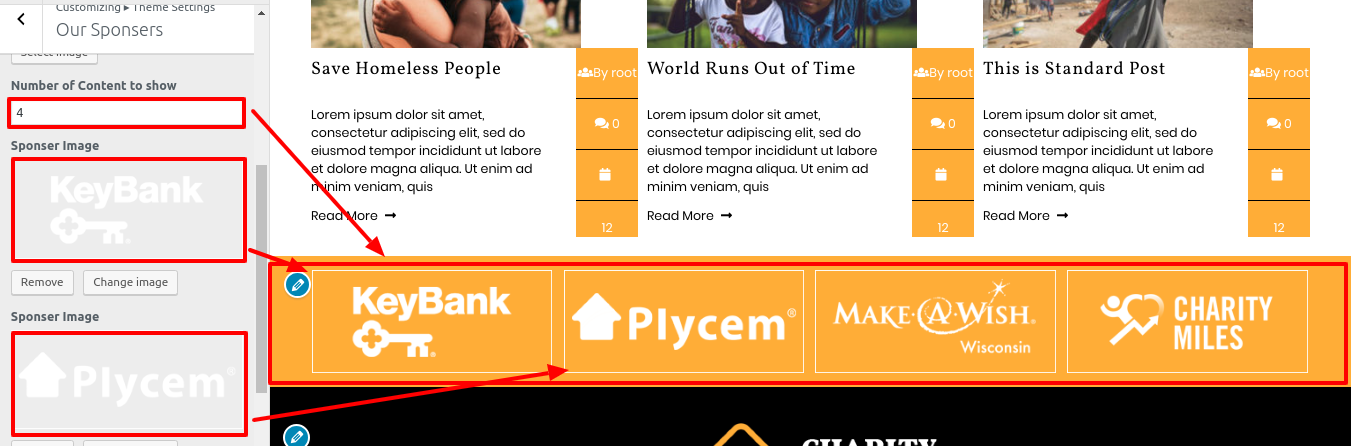 Go to Appearance >> Customize >> Theme Settings>> Our Sponsors.
