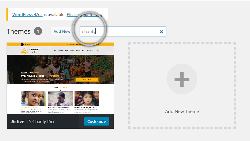 You will see a singular theme or a list of themes that fit your criteria depending on your search. In our instance, we looked for the TS-Charity-Pro blogging theme.